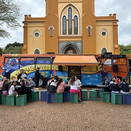 A Palmeiras Saneamento, em parceria com a Secretaria Municipal de Educação e a Fundação do Livro e Leitura de Ribeirão Preto, trouxe para a cidade o projeto Ônibus Livro-Vivo, uma biblioteca itinerante que transforma o ato de ler em uma verdadeira experiência sensorial.